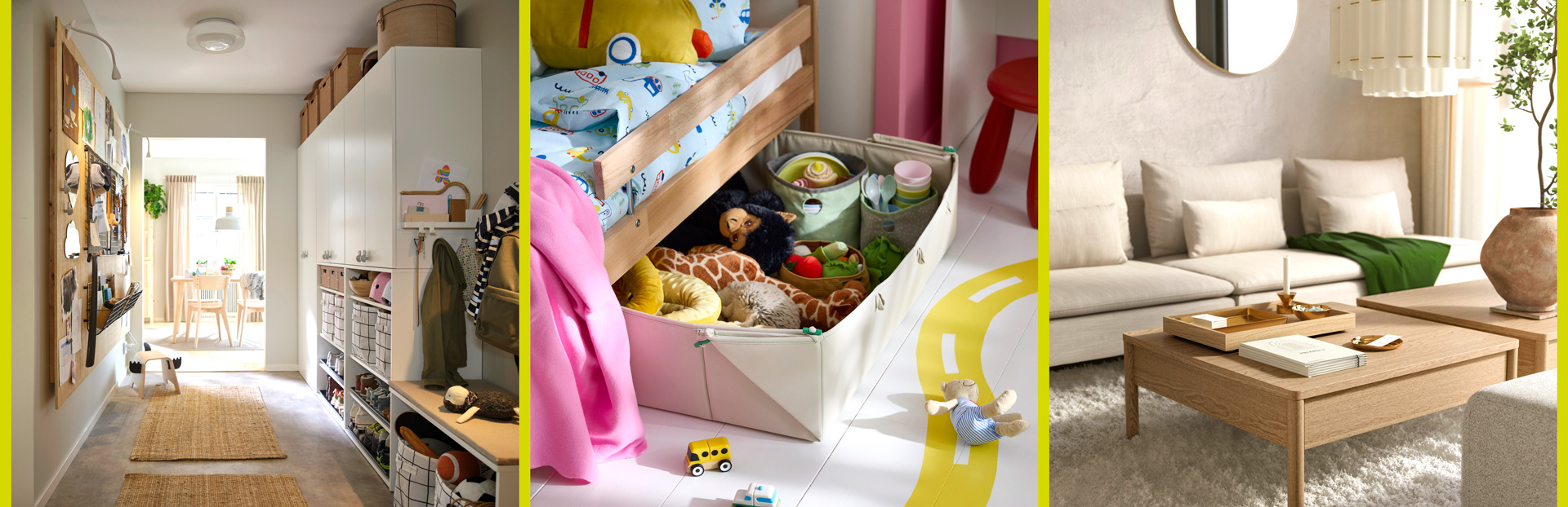 “Одна из главных причин, почему мы испытываем напряжение, оглядывая комнату в пятницу вечером, даже если в ней убрано, – это так называемый визуальный шум, когда пространство и поверхности завалены бросающимися в глаза предметами, которые лежат не на своих местах. Однако хорошая новость заключается в том, что именно в таких случаях даже небольшие усилия могут дать ощутимый результат, возвращая дому ощущение уюта и легкости”, – говорит руководитель отдела дизайна интерьеров IKEA Брита Миквере.