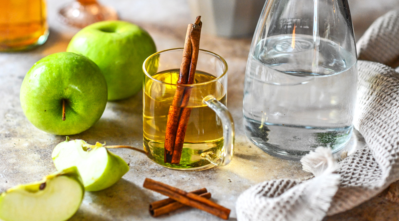Ингредиенты: яблочный сок, вода из-под крана, 1 палочка корицы или немного молотой корицы, немного меда по желанию.