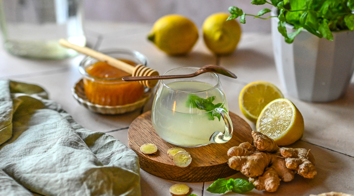 Яркое сочетание лимона и имбиря обеспечит свежий вкус напитка, а также поможет поддержать иммунитет в сезон вирусов. Лимон содержит витамин C, имбирь обладает противовоспалительным действием, мед поможет уравновесить лимонную кислинку, а свежая мята придаст напитку нотку свежести.