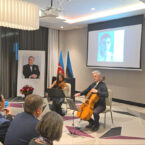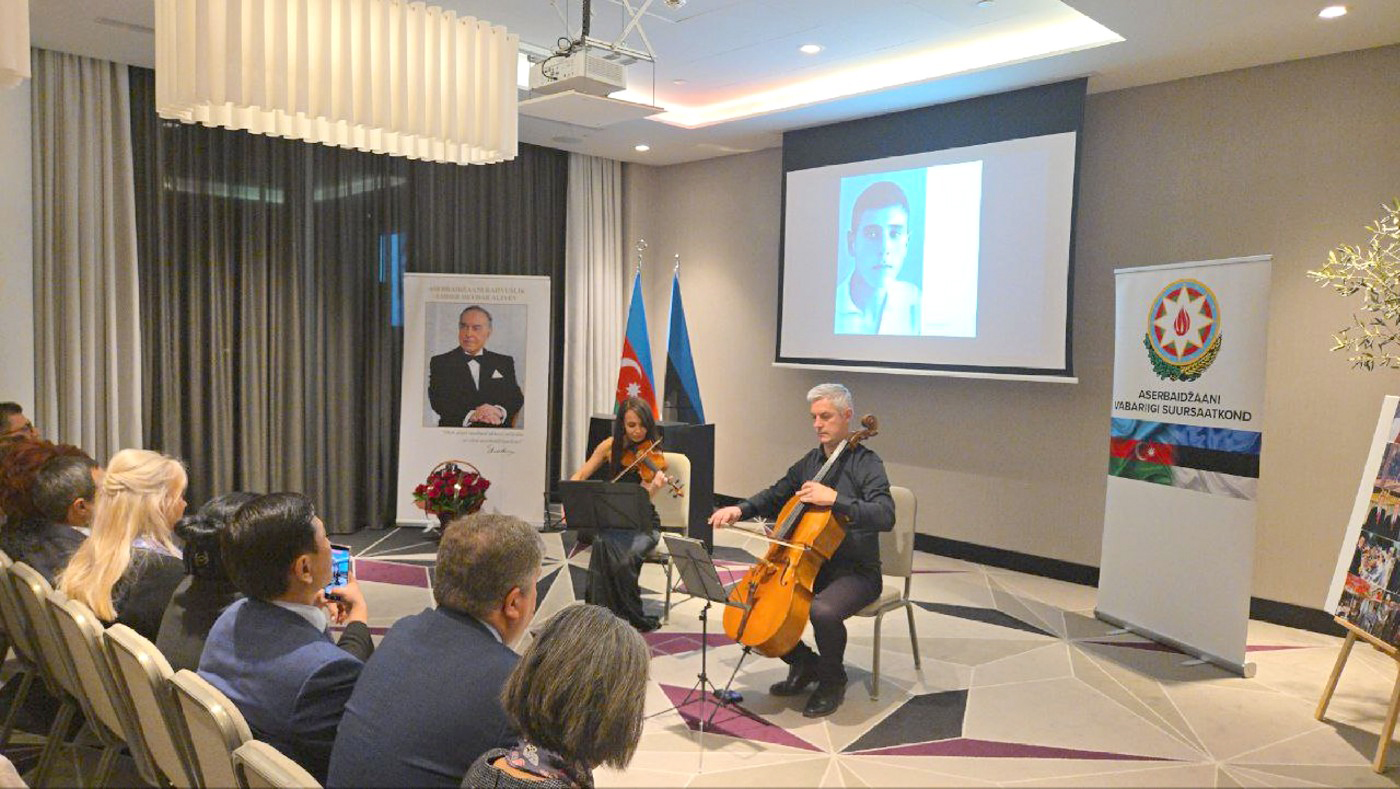 Далее был продемонстрирован видеоролик, отражающий жизнь и деятельность общенационального лидера Гейдара Алиева, а также в исполнении эстонских музыкантов прозвучали импровизация в стиле мугама «Раст», а также лирические произведения мировой классики.